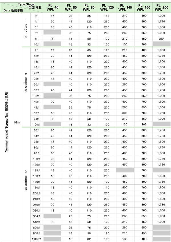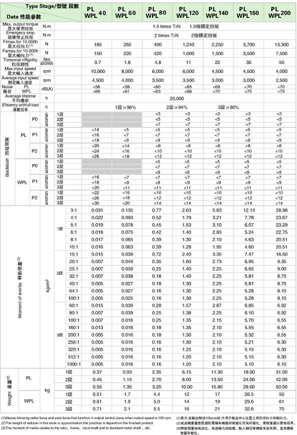 PL/WPL 系列精密行星減速機技術(shù)參數(shù)